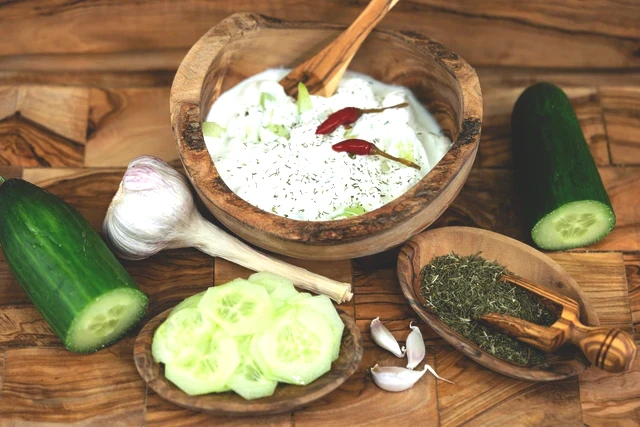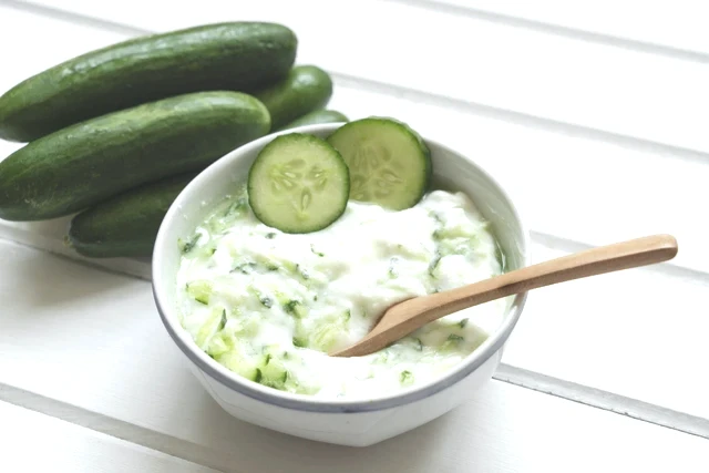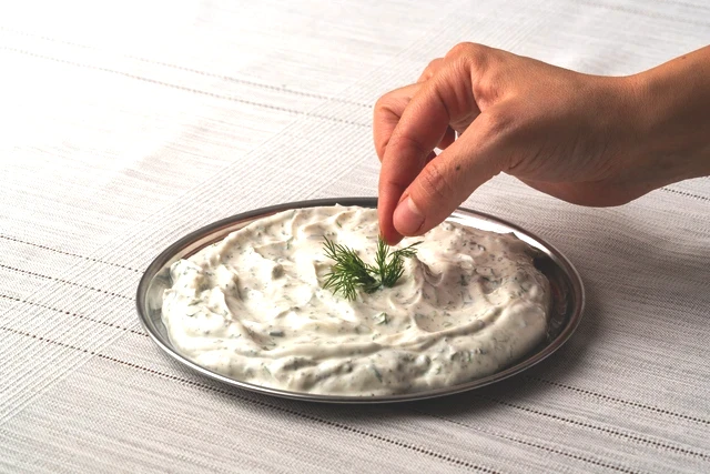 Salatalıkların kabuklarını soyup, iri rendenin kenarı ile rendeleyin. Fazla suyunu sıkıp iyice süzün. Derin bir kapta süzme yoğurdu, ezilmiş sarımsağı ve tuzu iyice çırpın.