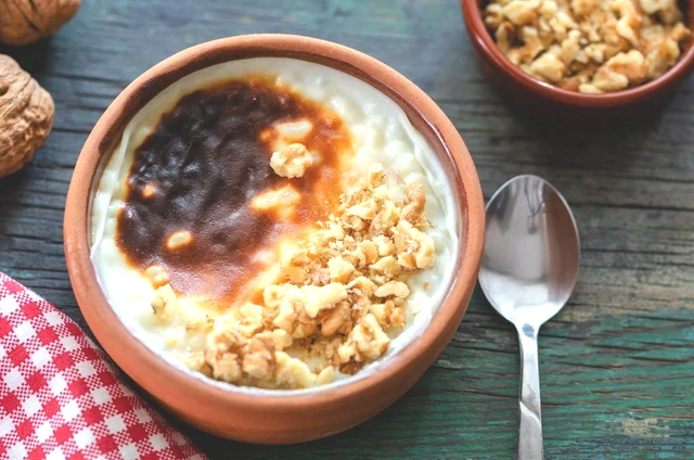 Pirinçleri yıkayıp küçük bir tencerede 2 su bardağı su ile yumuşayana kadar haşlayın. Haşlanan pirinçlere 1 litre soğuk süt ve toz şekeri ekleyin ve kaynamaya bırakın. Ayrı bir kapta mısır nişastasını yarım çay bardağı soğuk su (veya süt) ile pürüzsüz bir kıvama gelene dek karıştırın.